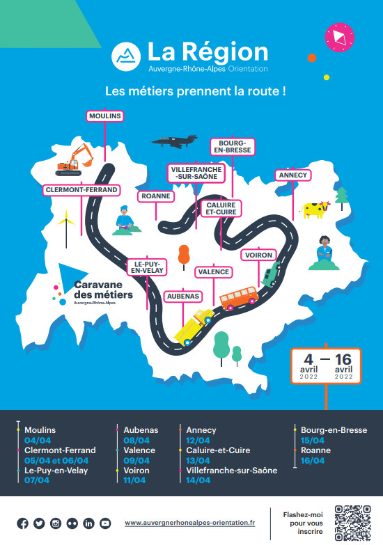 Organisée par Auvergne-Rhône-Alpes Orientation en lien avec ses partenaires, une Caravane des métiers va sillonner notre région du 4 au 16 avril prochain.
