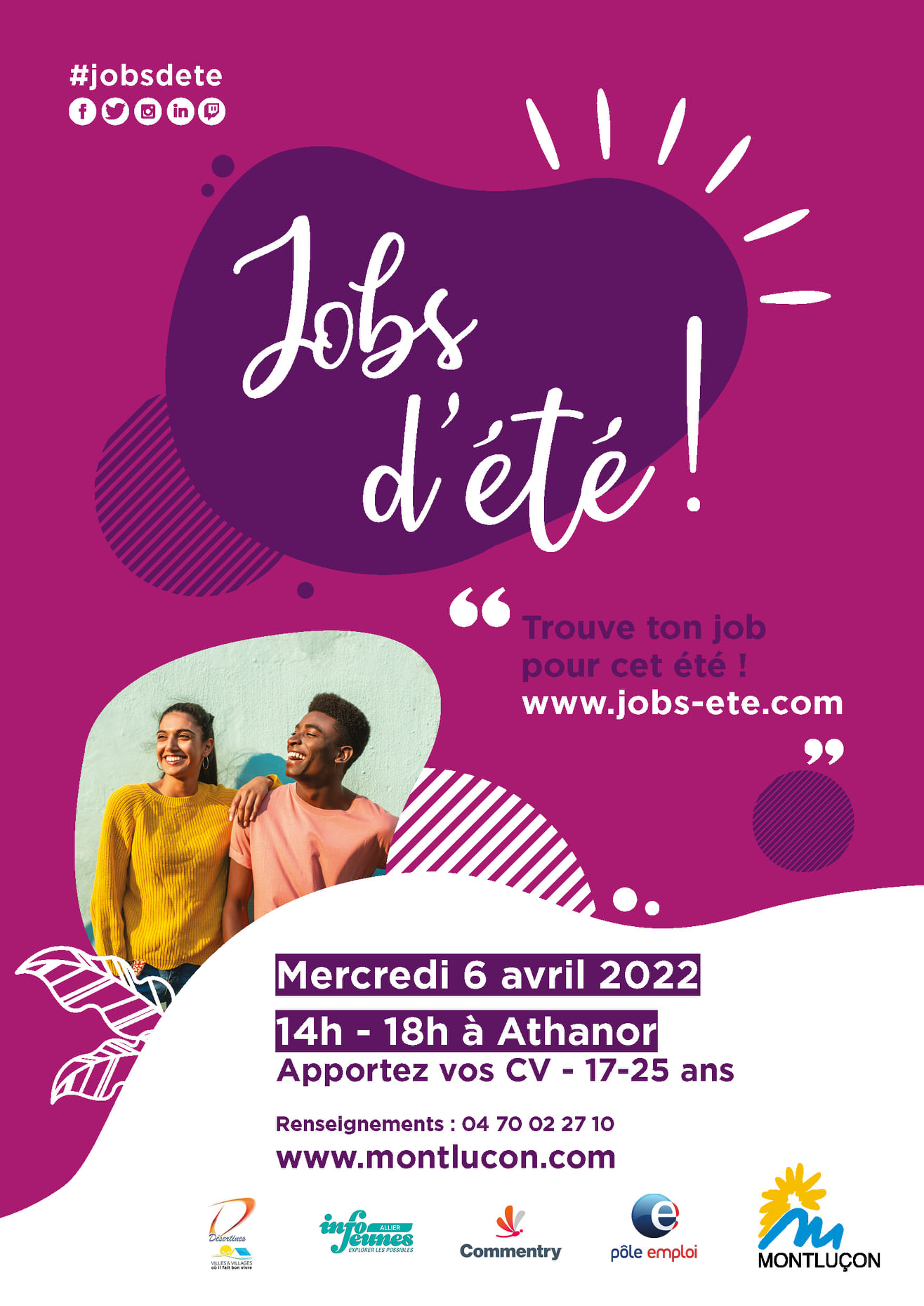 Envie de travailler cet été ? Rendez-vous au Forum Job d’été, organisé par les espaces d’informations jeunesses du bassin montluçonnais, mercredi 6 avril 2022 à Athanor de 14h à 18h !