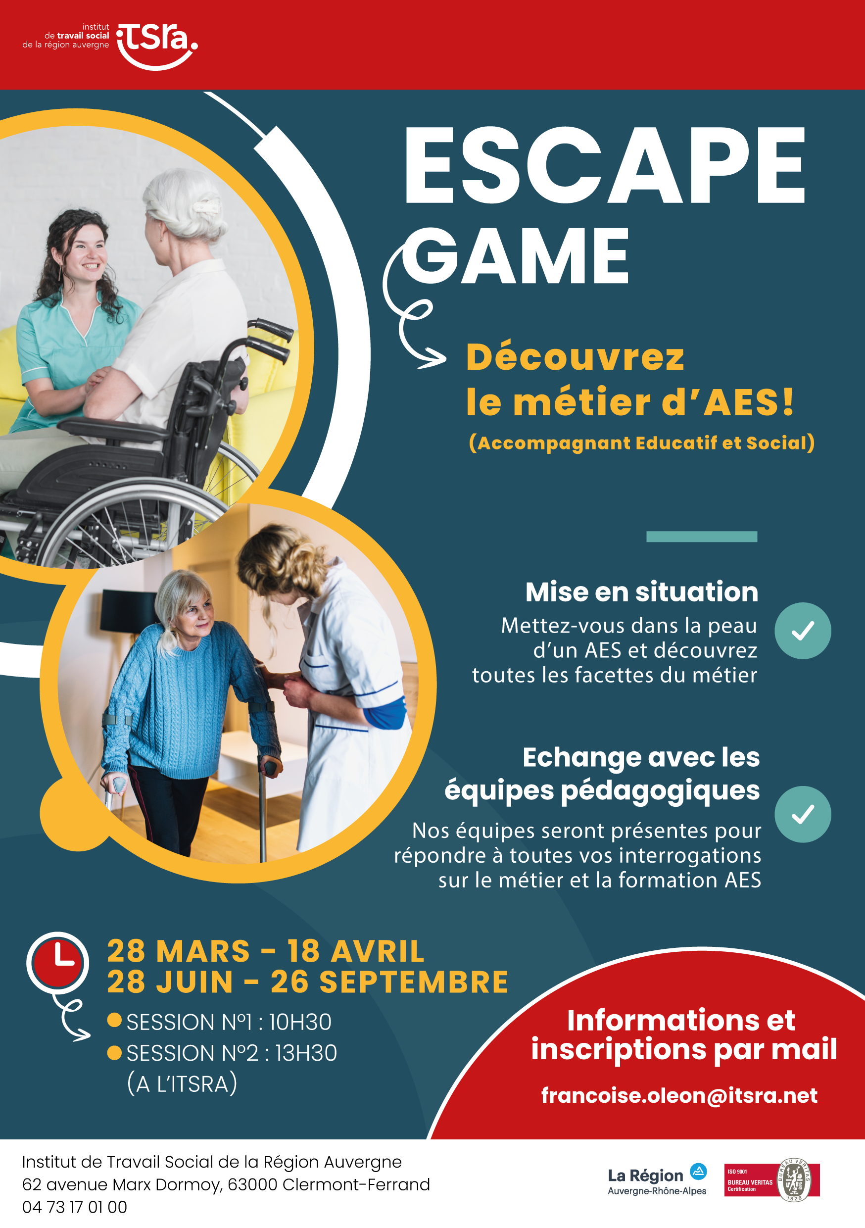 L’ITSRA (Institut de Travail Social et de Recherche Appliquée) est ravi de vous convier à leurs Escape Games spécialement conçus pour vous plonger au cœur de ce métier essentiel.