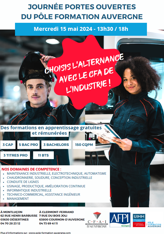 Accueil Actualités 📢 A ne pas louper ! JPO Pôle Formation Auvergne