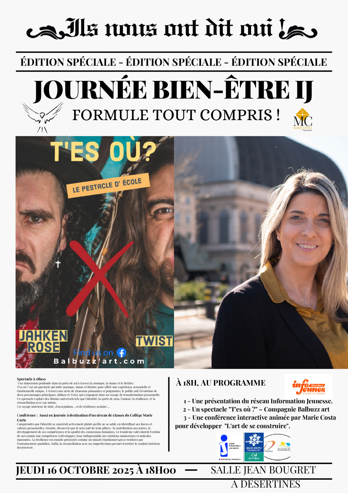 Dans le cadre de la Semaine d’Information sur la Santé Mentale (6-18 octobre 2025), un événement à ne pas manquer organisé par le service Information Jeunesse de Désertines :